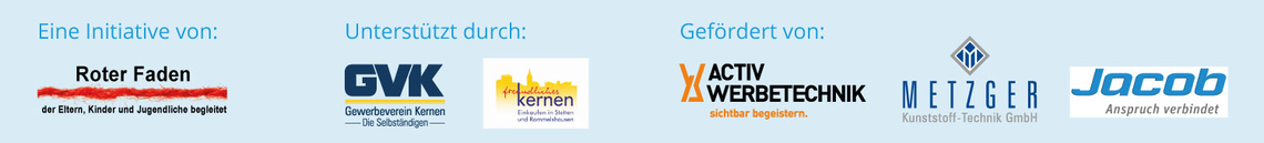 Activ Werbetechnik GmbH, Christof Fischer GmbH, Diakonie Stetten e.V., Dieter Hahn, Inh. Rainer Hahn e.K., Dr. Guido Elsäßer, Eicher Werkstätten GmbH & Co. KG, Fitness & Physio Fündling, Gasthof Hirsch (Praktikum und in Planung), Gemeinde Kernen im Remstal, Jacob GmbH, Kittel GmbH Bauflaschnerei, Lack & Karosserie Reit GmbH, Leich + Mehl GmbH, MBK Markisenbautechnik GmbH, Metzger Kunststoff-Technik gmbH, Metzgerei Schäfer, Reinhold Bürkle Technische Federn GmbH, RJE Sounds Veranstaltungstechnik (in Planung), Schlienz- Tours GmbH & Co. KG, schrift & farbe, Supermarkt Lang GmbH, TEKON Prüftechnik GmbH, Uhlig Kakteen, Volksbank Stuttgart eG, Weingut Beurer, Wilhelm Kern GmbH, Wilhelm Schetter GmbH Haustechnik, Wohlgemuth GmbH / Emil Reimann Remstal, Zum Ochsen Schlegel GmbH