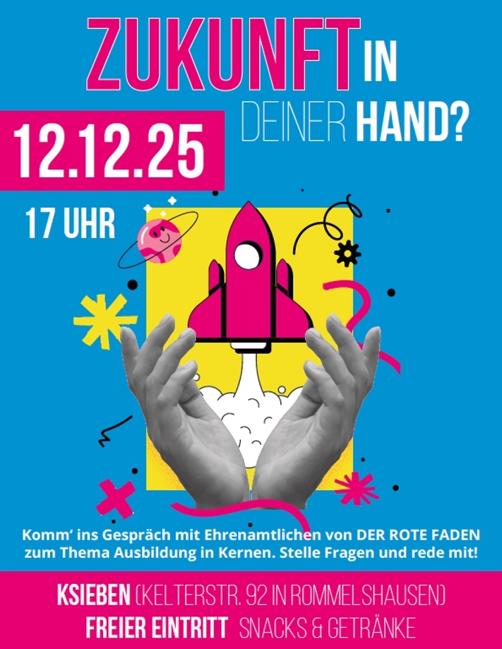 Wenn du als Erste(r) mehr zum Thema wissen willst, dann komm' doch am Freitag, 12.12.2025 um 17.00 Uhr in DEIN Jugendhaus K7 nach Rommelshausen. Siehe "Veranstaltungs-Motiv" hier unten.