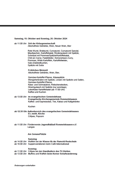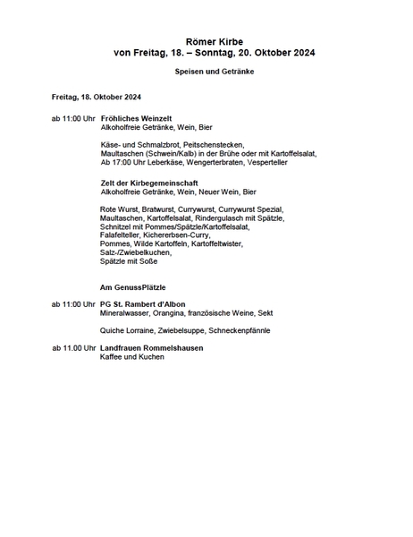 Das komplette Speisen- und Getränkeangebot während der dreitägigen Römer Kirbe finden Sie hier unten sowie auch in der App Kernen.Entdecken, in der Rubrik AKTUELLES. Hier auf das Bild klicken und mehr erfahren.